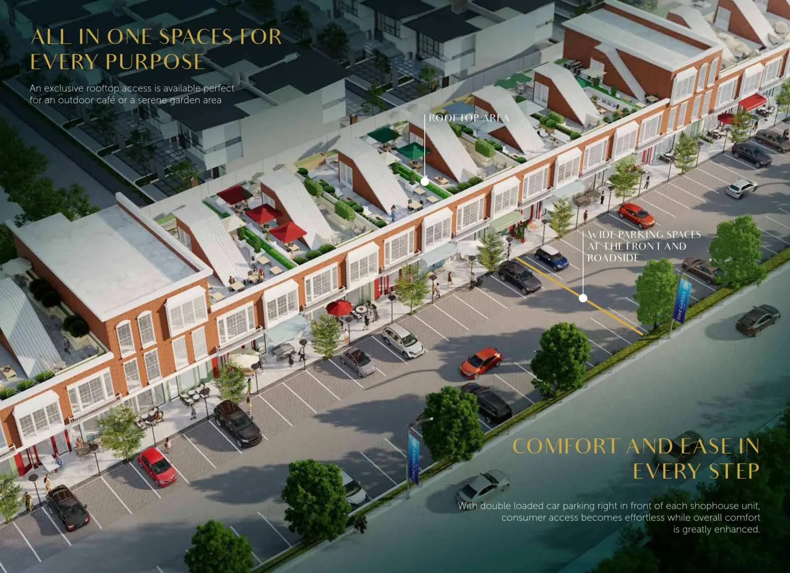 Setiap unit Ruko Quinslane dirancang untuk memberikan kenyamanan maksimal, dilengkapi double loaded car parking tepat di depan ruko, menghadirkan kemudahan akses bagi konsumen dan kenyamanan ekstra bagi aktivitas bisnis Anda.